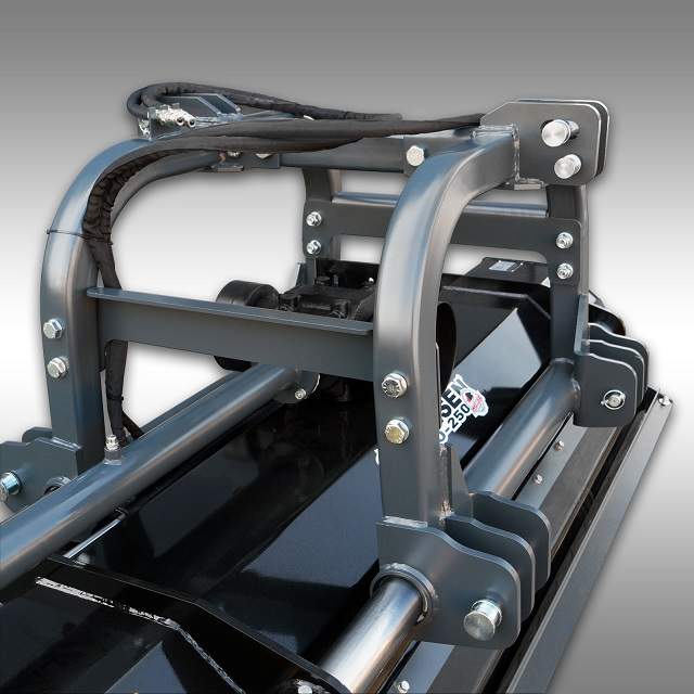 Kosiarka posiada układ zawieszenia oraz przekładnię umożliwiającą współpracę z ciągnikami posiadającymi przedni TUZ oraz siłownik hydrauliczny umożliwiający boczne przesuwy aparatu tnąco - rozdrabniającego.